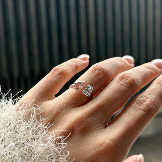 Fancy Vivid Pink Pear & Radiant Diamond Toi et Moi Ring